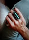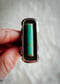 Tyrone turquoise shadowboxed in sterling silver. Curb-chain accented shank. Size 8.